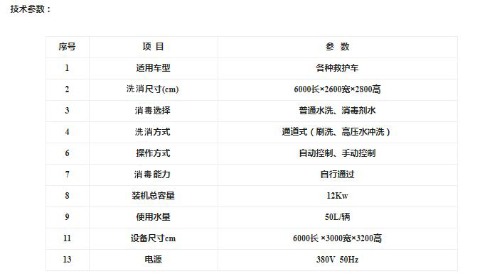 3. 救护车洗消通道可根据需要消毒剂喷射清洗。