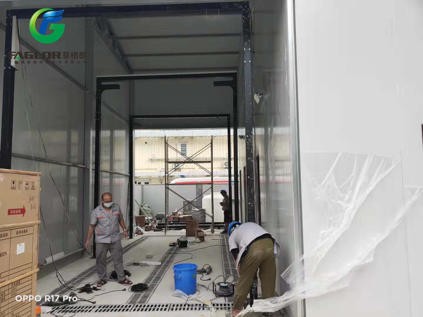 2. 洗消通道的侧面设置防护罩,防止洗车时水向外溅射。