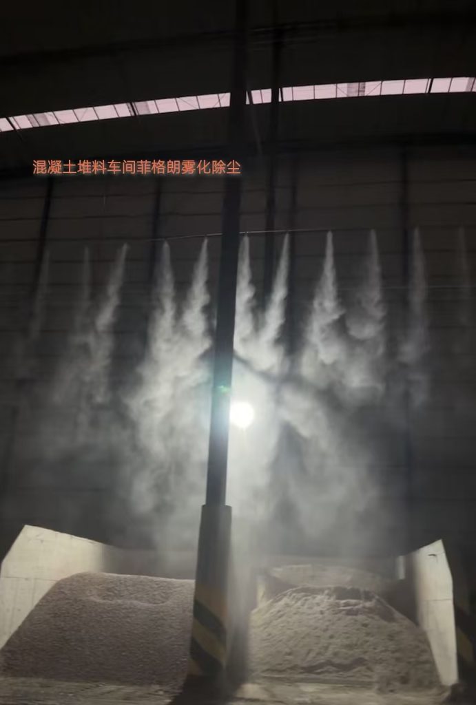 广州菲格朗高压雾化除尘系统、雾桩是混凝土堆料车间粉尘治理的成熟、高效选择。我们成功实施关键在于精准的尘源分析、合理的喷雾布局、智能的控制策略以及规范的维护。
