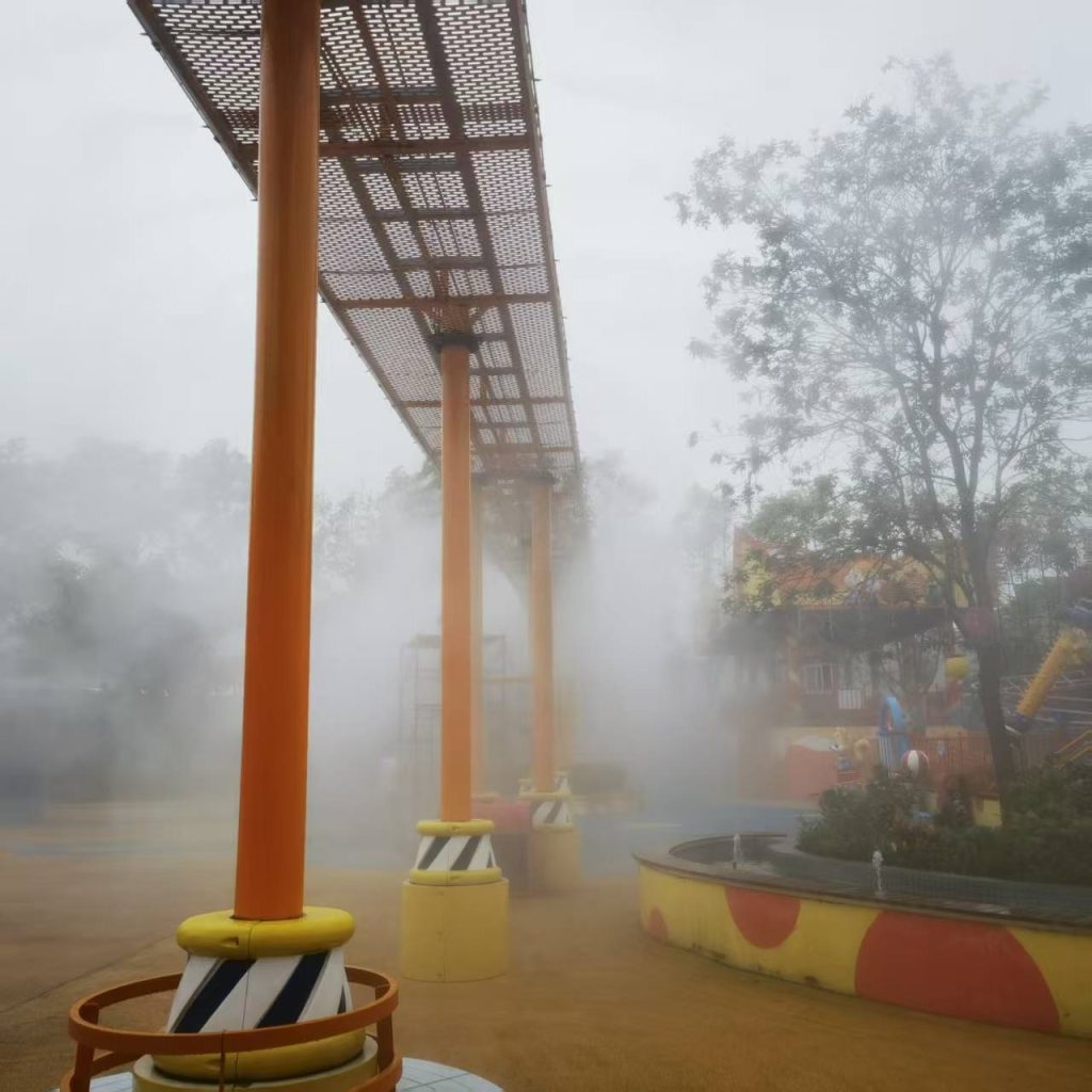 系统将水转化为亿万微米级雾粒,在蒸发过程中迅速吸收大量热能,实现快速降温。游客一进入雾森覆盖区域,即刻感受到明显的清凉舒适。